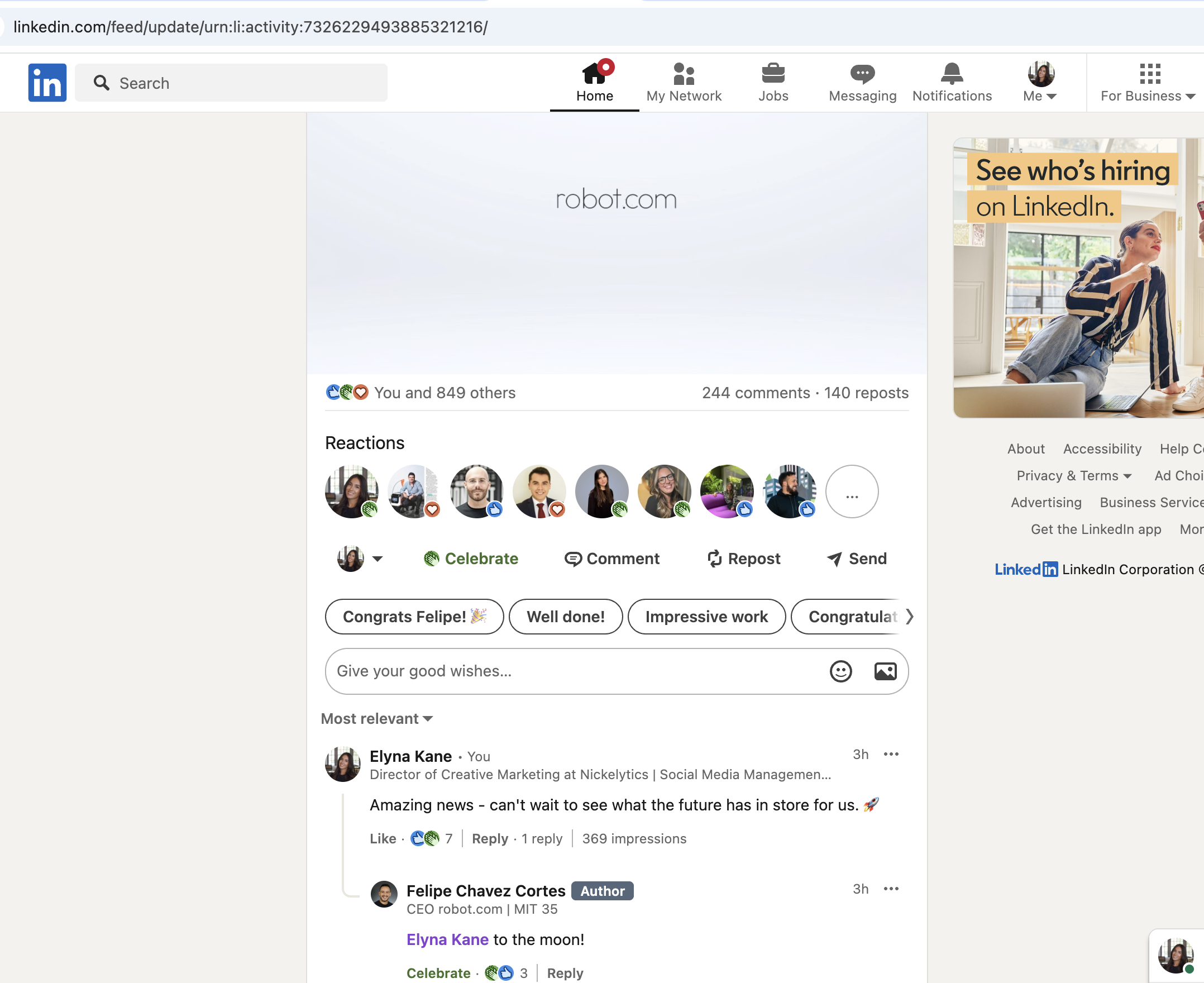 Partnered with Robot.com to support the creative launch of a new robotics brand entering the market. Working alongside the external branding agency, we helped translate the developing identity into a living, breathing brand experience across web, social, investor communications, and early-stage positioning.