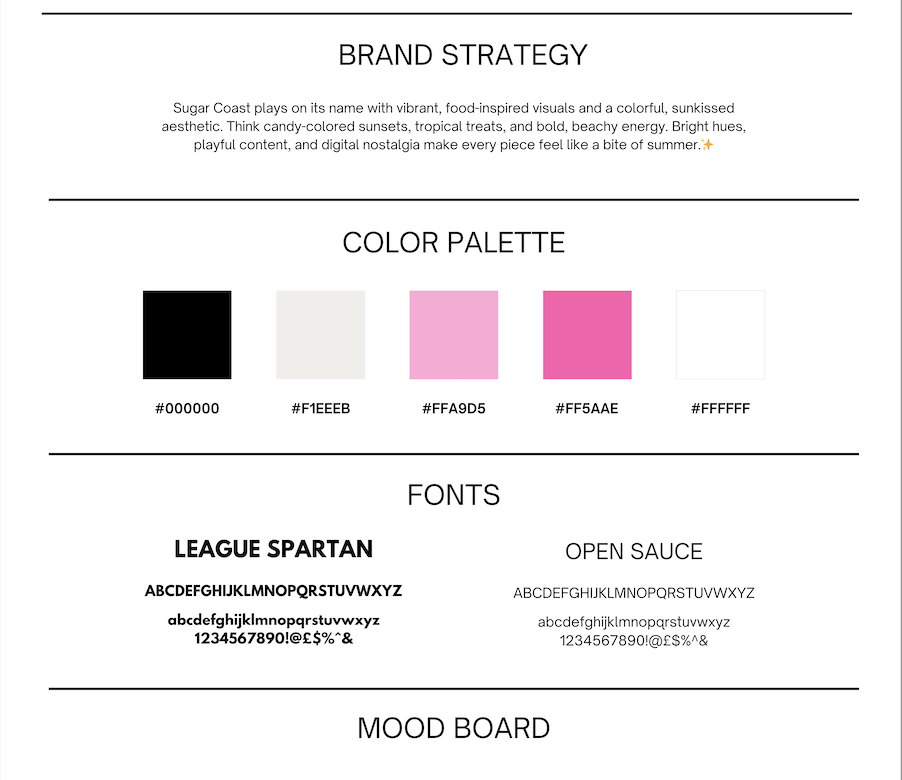 After Hours fully owned the creation and launch of Sugar Coast, developing the brand from a concept into a complete, market-ready identity. We crafted the full visual system including a custom logo suite, color palette, typography, and an aesthetic direction rooted in bright, coastal optimism.